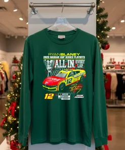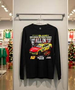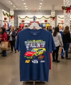 Just last week, scrolling through my feed, I caught a major LA fashion influencer, “Style Maven,” buzzing about how “heritage sports culture” is in. She mentioned team gear making a bold statement on the streets of Silver Lake, blending with the “quiet luxury” movement. This wasn’t just high-end designer collabs; it was about genuine passion, making everyday items iconic. My mind immediately jumped to the upcoming 2025 Nascar Cup Series Playoffs and my unwavering support for Ryan Blaney. This isn’t just a race; it’s a cultural phenomenon. Imagine Mike, a long-time Blaney faithful from Pasadena, picturing himself in the Ryan Blaney Checkered Flag Sports 2025 Nascar Cup Series Playoffs Menards Shirt. He’s not just buying a tee; he’s buying an experience. He sees himself at a local sports bar, surrounded by fans, his shirt a conversation starter, or even at a pop-up “sustainable fashion” market, feeling perfectly on-trend. The “motorsport chic” trend isn’t just about looking good; it’s about authenticity. This shirt is a declaration of allegiance, a signal to other enthusiasts that you’re part of the winning team, ready for every exhilarating moment. With the buzz around “vintage racing aesthetics” and “gender-neutral streetwear,” this tee is a must-have for anyone needing to show Blaney pride while staying effortlessly stylish in Los Angeles fashion.