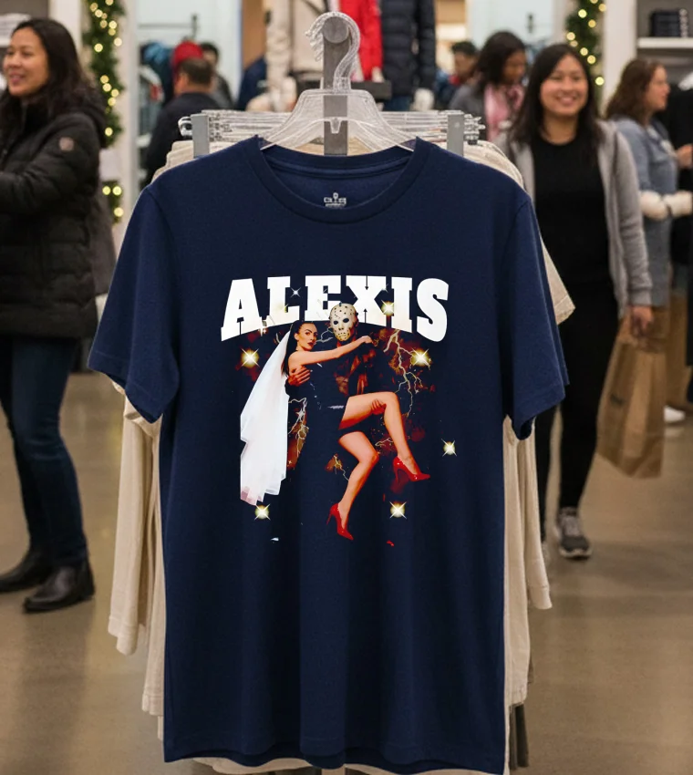 Now, let’s really zoom in on what makes this T-shirt special. It’s a statement, a whole vibe. The genius lies in that unexpected pairing – the iconic, menacing Jason Voorhees, but then… the bold, playful, unforgettable addition of Alexis Texas. It’s such a brilliant, cheeky juxtaposition, isn’t it?! This design is for people who appreciate humor and horror, who aren’t afraid to wear something that sparks a double-take and a laugh. Beyond the incredible design, the shirt itself is a dream to wear. Premium, super-soft fabric feels amazing – not that stiff, scratchy stuff you sometimes get with graphic tees, ugh. The cut is a classic American fit, relaxed but sharp. Rock it with distressed denim for ultimate vintage streetwear, or layer under an open plaid flannel. For a night out, pair with sleek black chinos and fresh white sneakers. It’s incredibly versatile. Don’t miss out! Buy now and redefine your casual cool.