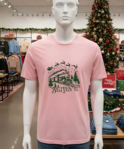The holiday season in Los Angeles is truly something special. Just last week, I was scrolling through my feed, seeing all the buzz around the festive window displays on Rodeo Drive and the pop-up shops taking over Melrose Avenue. Even with all the glitz and glam of the recent Hollywood fashion week events, a simple holiday tee can cut through the noise. It reminded me of a moment a few years back, during the annual Hollywood Christmas Parade, where everyone from local celebrities to everyday folks were looking for that perfect blend of comfort and festive cheer. I saw a young couple there, bundled up but clearly wishing for something lighter, more expressive of their holiday spirit. That’s exactly where the Christmas Believe Merry Christmas T Shirt shines. It’s not just for a specific event, but for any moment you want to spread a little joy. Maybe you’re grabbing a pumpkin spice latte at a trendy Silver Lake cafe, or perhaps you’re at the Americana at Brand enjoying the holiday lights, looking for that effortlessly chic, off-duty style that LA fashionistas adore. This tee fits right in. It’s perfect for those laid-back Sunday brunches, a casual family gathering, or even just unwinding at home while the aroma of holiday cookies fills the air. With the rise of sustainable fashion and vintage-inspired looks dominating the LA street style scene, this T-shirt, with its timeless message, truly taps into that desire for authentic, feel-good apparel. It’s for anyone who wants to wear their heart on their sleeve, literally, and carry the spirit of “believe” into their daily life, whether they’re navigating the bustling streets of Downtown LA or enjoying a quiet evening in Malibu.