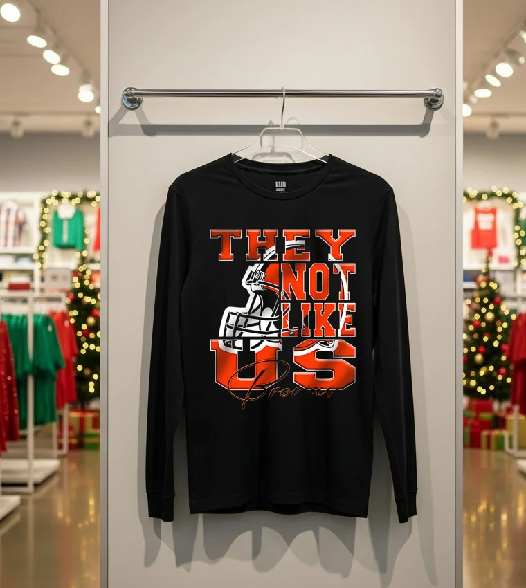 Remember when Cleveland’s own Jason Kelce rocked a vintage Browns shirt on New Heights? Or when that “They Not Like Us” energy became a rallying cry, not just for the Browns, but for anyone who feels like an underdog ready to defy expectations? That’s the vibe this shirt captures. Imagine it: you’re walking down Melrose Avenue in LA, where every corner screams fashionista and the latest streetwear drops are the talk of the town. Celebrities like Hailey Bieber are constantly spotted elevating casual looks, making a statement with oversized tees and vintage-inspired graphics. This isn’t just a shirt; it’s your game-day armor, your statement piece for those casual coffee runs, or even an unexpectedly cool layer for an evening out. As LA gears up for the next big pop-up art installation down at ROW DTLA, showcasing cutting-edge, sustainable fashion, this tee fits right in. It’s got that authentic, slightly rebellious spirit that resonates with the city’s current obsession with bespoke, comfort-first, yet undeniably chic, individual style. Whether you’re cheering from the couch, or making a statement at a watch party, this Cleveland Browns They Not Like Us Nfl Football Shirt isn’t just about football; it’s about belonging, standing out, and telling the world your story.