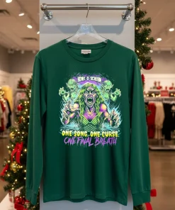 Let’s really look at the design here: “One Song One Curse One Final Breath.” The typography itself is a masterpiece, almost like something you’d find on a vintage horror movie poster from the 80s, but with a modern, crisp edge. It’s not just text; it’s an entire mood, pulling you into a narrative. This T-shirt isn’t just about wearing a graphic; it’s about embodying a feeling, a little bit spooky, a little bit rock ‘n’ roll. The advantage? It’s a conversation starter, always! People will lean in, try to read it, ask what it means. Made from incredibly soft, premium cotton, it feels like an old favorite from the very first wear. The fit is relaxed, effortlessly cool, giving off that perfect “I just threw this on” vibe, even when you’ve meticulously planned your outfit. Seriously, I layered mine with an open plaid flannel, some dark wash jeans, and my trusty Doc Martens for a night out, and felt like I owned the room. It’s super versatile – you can dress it up, dress it down, or just chill in it. Ready to embrace the chill, or just looking for a cool new piece?