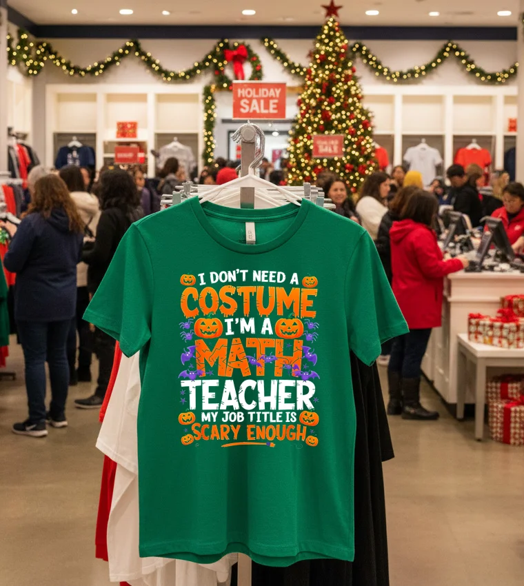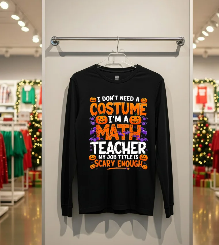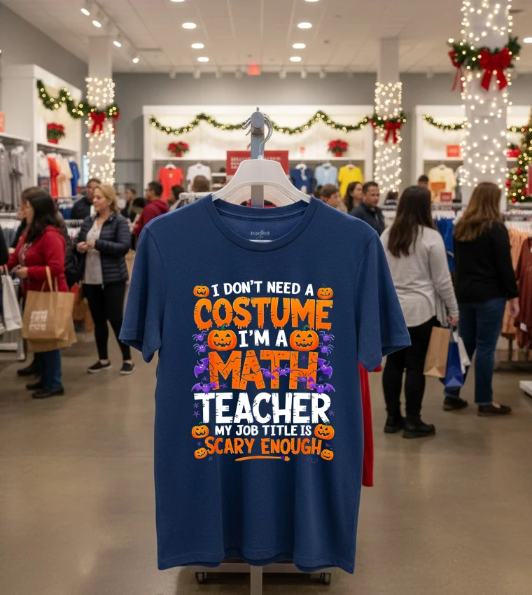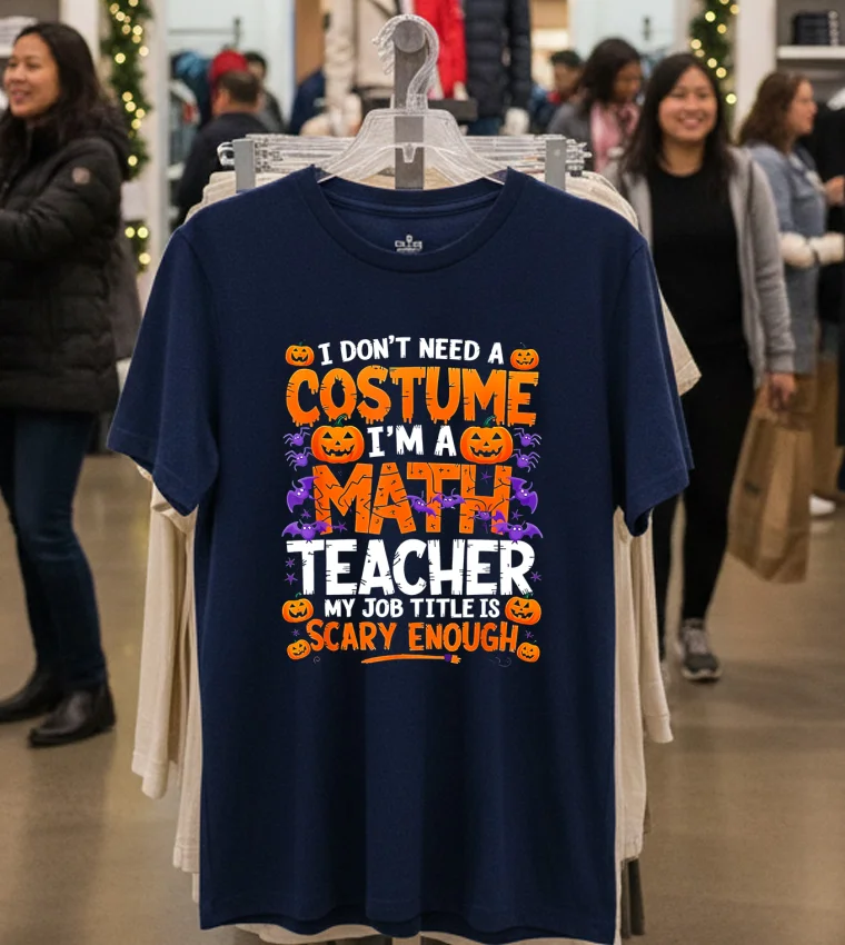 Remember when all the talk at Coachella this year wasn’t just about the music, but about the effortlessly cool, vintage-inspired streetwear everyone was rocking? Or how about that recent “Pop-Up & Chill” event in Venice Beach where celebrity stylists were touting the rise of “intelligent fashion”—pieces that make a statement without screaming for attention? That’s exactly where the I Don’t Need A Costume I’m A Math Teacher Retro Halloween Shirt perfectly slots into Los Angeles’s dynamic, ever-evolving fashion scene. Picture this: it’s early October, the air is just starting to get that crisp, pre-Halloween chill, even here in sunny L.A. Maybe you’re a math teacher named Ms. Davis, just like Sarah, one of our favorite customers. She’s scrolling through Instagram, seeing all the wild costume ideas and the latest “quiet luxury” looks, but she just wants something that’s her. Something witty, a little retro, and totally comfy for her classroom, but also perfect for the casual Halloween potluck her school’s throwing. This shirt isn’t just for Halloween; it’s a badge of honor for anyone who finds beauty in equations and humor in everyday life. It’s about personal expression, a huge trend right now—think “main character energy” but with a brainy twist. It’s perfect for the person who loves vintage graphic tees but also wants to inject some personality into their style. Whether you’re heading to a farmers market in Silver Lake, grabbing coffee in Santa Monica, or just running errands, this tee lets you declare your brilliant, slightly sarcastic identity without having to put on a whole show. It’s a nod to niche interests, a big movement in L.A.’s youth culture and sustainable fashion circles, where authenticity trumps everything else.