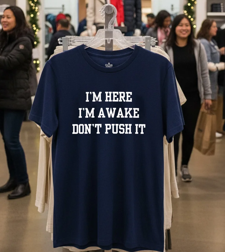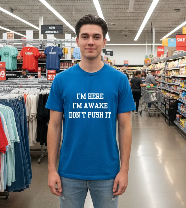 Just got my I M Here I M A Wake Don T Push It Shirt from Teelabusa yesterday, and wow, talk about speed! “Got mine in three days, totally free shipping, exactly as promised!” one review said, and I second that. Another mentioned, “Super impressed with the quality and how fast it arrived, gonna be a go-to!” It makes you wonder, how do they do it? And their return policy is just as straightforward, really makes you feel good about buying from them. This shirt is already a favorite, I wear it all the time.