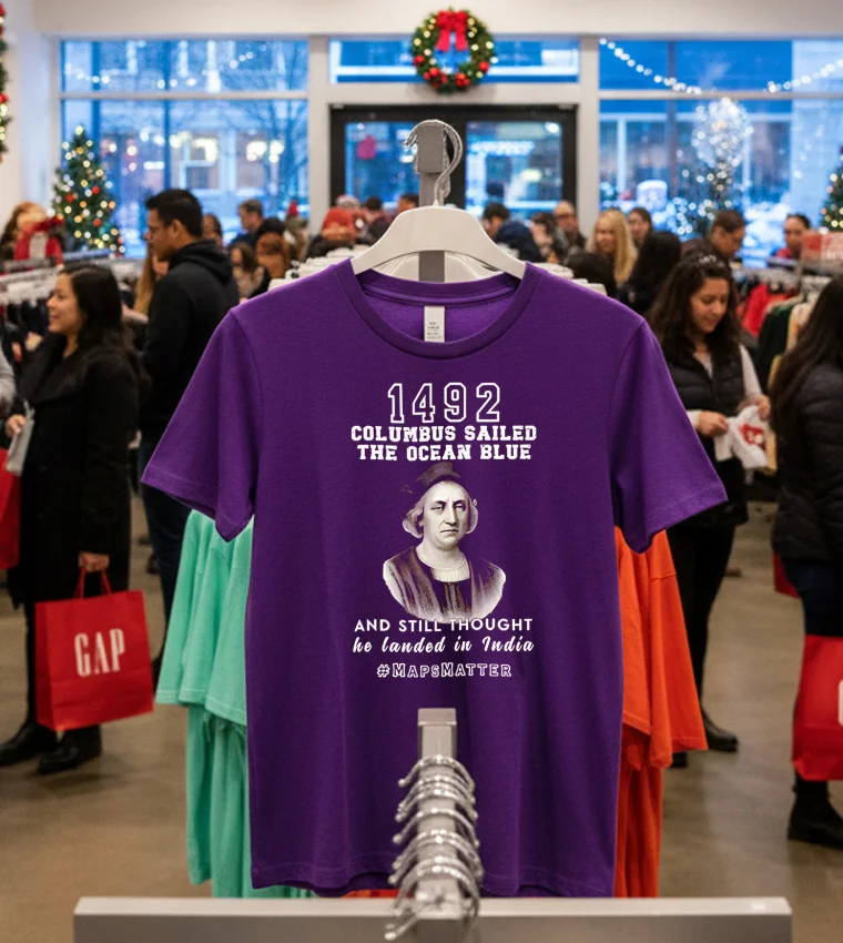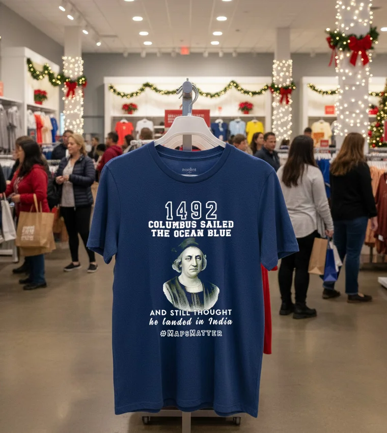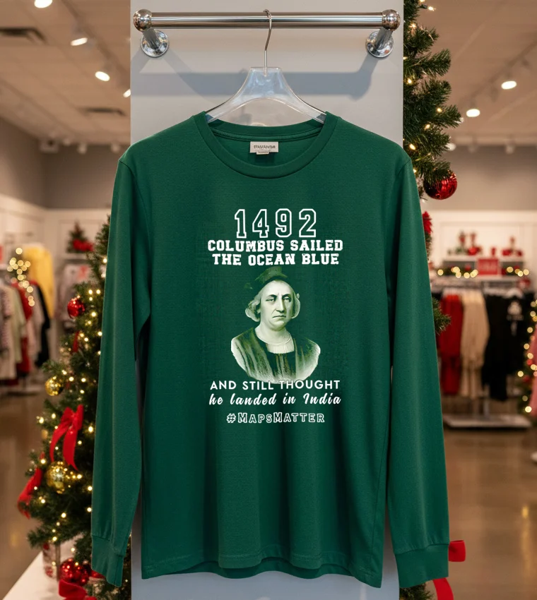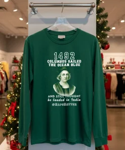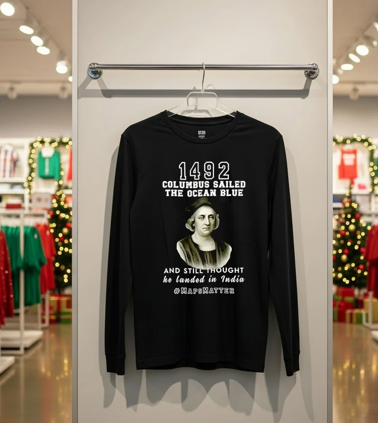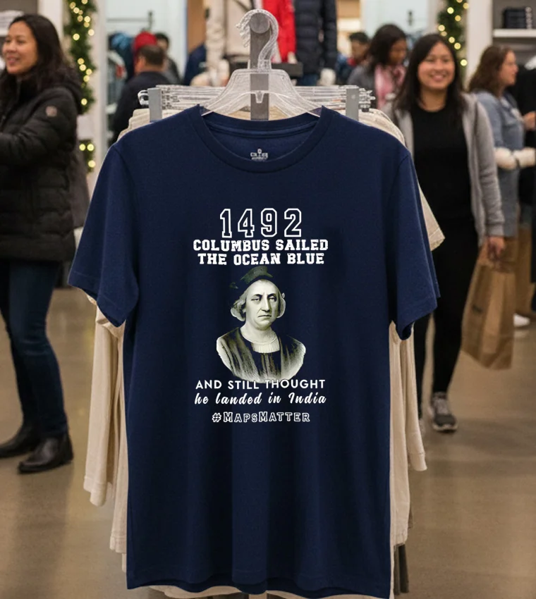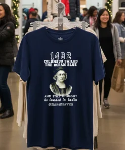 So, I was scrolling through my feed the other day, you know, just trying to avoid actually working, and saw this clip of Lizzo rocking a vintage-style tee at a Coachella after-party. She was talking about how fashion is all about making a statement, about owning your narrative. And it just clicked! My mind went straight to the In 1492 Columbus Sailed The Ocean Blue And Landed In India T Shirt I’d ordered. You see, with all the buzz around historical re-evaluation and cultural conversations happening right here in Los Angeles, especially with the upcoming ‘Reimagining LA’s Past’ art installations popping up Downtown, this tee feels incredibly relevant. It’s more than just a funny graphic; it’s a talking point. I mean, my buddy Mark just bought one because he’s heading to a debate watch party this weekend – he said he wanted something to spark a conversation, not just blend into the crowd with another minimalist streetwear look. This isn’t your average faded band tee, though those are still trending hard in Silver Lake, don’t get me wrong. But this one offers a unique twist on the vintage aesthetic, perfect for someone who appreciates both a good laugh and a thought-provoking design. It fits right into that ‘statement piece’ vibe that’s dominating West Hollywood’s current fashion scene, where personalized style and unique prints are really taking over from the more subdued, neutral palettes we saw last year. People are craving authenticity and a bit of a story behind what they wear. Imagine wearing this to a casual coffee meetup in Koreatown, or even pairing it with some tailored joggers and a bomber jacket for a night out in Venice. It’s got that effortless cool factor, a touch of ironic humor, and definitely sets you apart from the crowd who are still chasing the ‘quiet luxury’ trend. It’s for those who aren’t afraid to wear their thoughts, or at least a chuckle, on their sleeve.