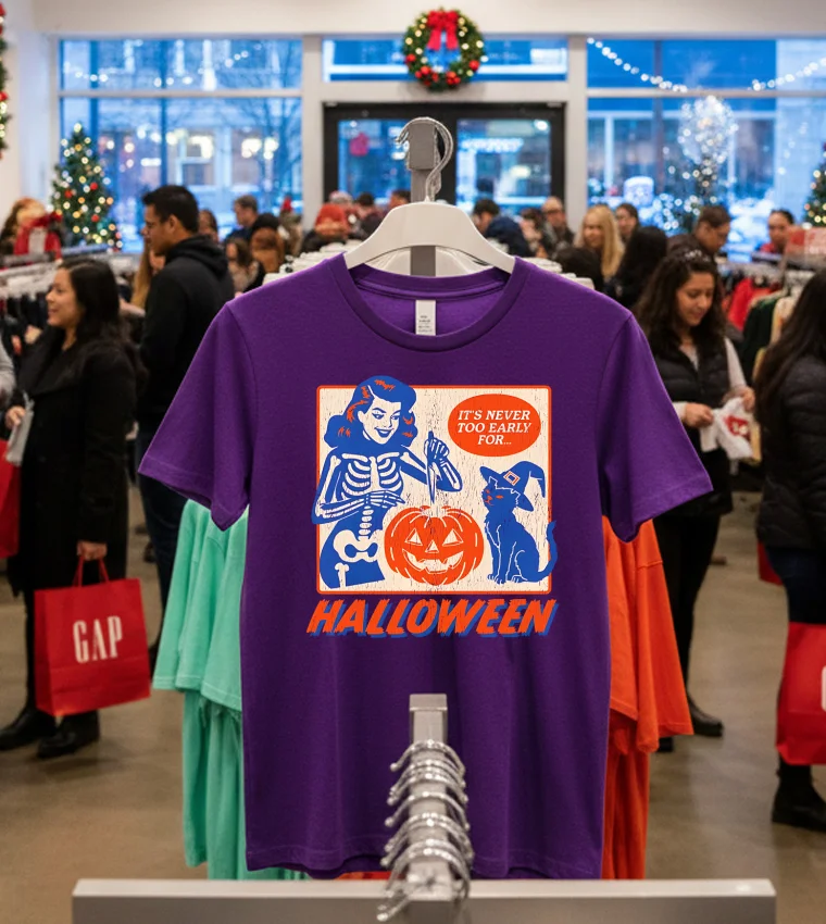 Remember that buzz around Billie Eilish’s “Happier Than Ever” pop-up in LA, celebrating that cool, effortless vibe? Or how about the recent buzz at Los Angeles Fashion Week, where vintage finds and sustainable streetwear were totally stealing the show? It’s all about expressing yourself, and let’s be real, some of us live for those quirky, conversation-starting pieces. Take Sarah, for instance. She’s an interior design student in Silver Lake, always on the lookout for something unique. She was scrolling through her feed, seeing all the talk about fall fashion starting way too early, and then, boom—a sponsored post for the It S Never Too Early For Halloween Shirt popped up. Her eyes lit up! Halloween is her absolute favorite, and she’s always felt a little alone in her year-round spooky spirit. This past week, with the September heat still lingering but pumpkin spice lattes already hitting coffee shop menus across LA, she knew it was time. She pictured herself wearing it to her favorite vintage market in Los Feliz, maybe to a late-night screening at the New Beverly Cinema, or even just grabbing an oat milk latte at Alfred Coffee. It’s more than just a shirt for Sarah; it’s a statement. It’s her way of saying, “Yeah, I’m that person who plans her Halloween costume in July, and I’m proud of it!” In a city like LA, where personal style is king and every street corner feels like a runway, this tee isn’t just a trend; it’s a declaration of individuality, a perfect blend of comfort and cool.