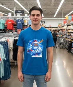 Let’s really zoom in on that design for a second. The genius of this shirt isn’t just Santa Claus in Dodger blue; it’s how perfectly he’s blended into the classic Dodger aesthetic, complete with a baseball bat instead of a sleigh bell. It’s subtly playful, not overtly kitschy, which is hard to pull off! This gives you an advantage: you can wear it from Thanksgiving right through to New Year’s and beyond, without it feeling dated. The material itself is a dream – imagine pulling on something that feels like your favorite broken-in tee from the first wear. We’re talking 100% American Cotton here, so it’s super soft, has just the right amount of stretch, and you can actually breathe in it, no weird stiff feeling. Styling this tee is a breeze, too. For a classic LA vibe, throw it on with some distressed denim shorts and high-top sneakers. Want to elevate it for a casual holiday party? Pair it with dark-wash jeans, a cool bomber jacket, and some clean white kicks. Ladies, you could even tie it up at the waist with a high-waisted skirt for a totally chic, sporty-holiday look. Versatile, comfortable, it just screams laid-back cool. So, why wait? Grab yours now and be ready for all the holiday cheers, or gift it to that special Dodger fan. It’s truly the perfect gift for anyone who loves LA, the Dodgers, and a good laugh!