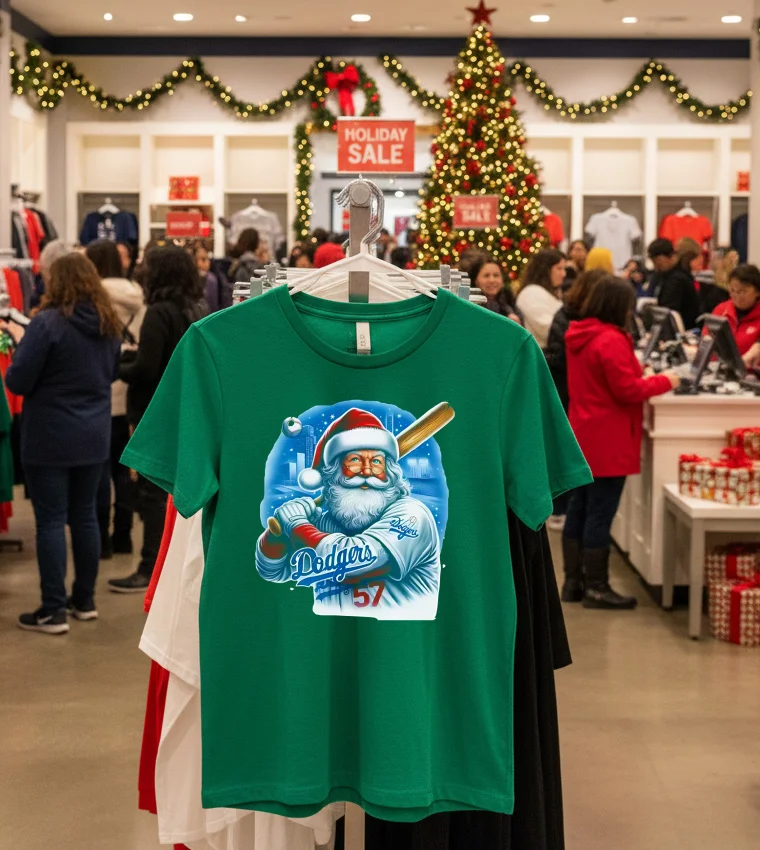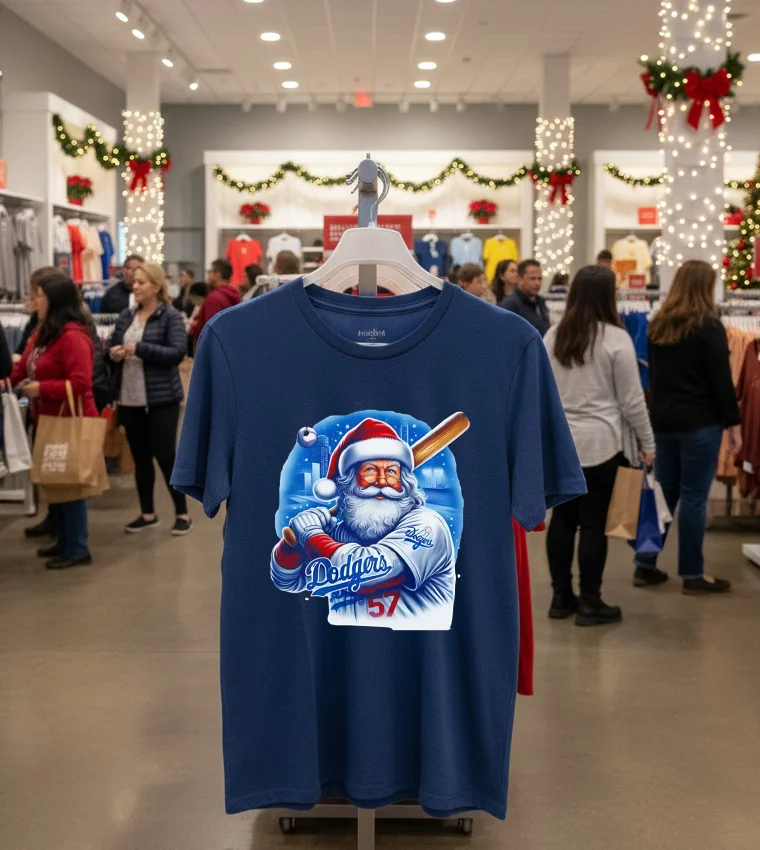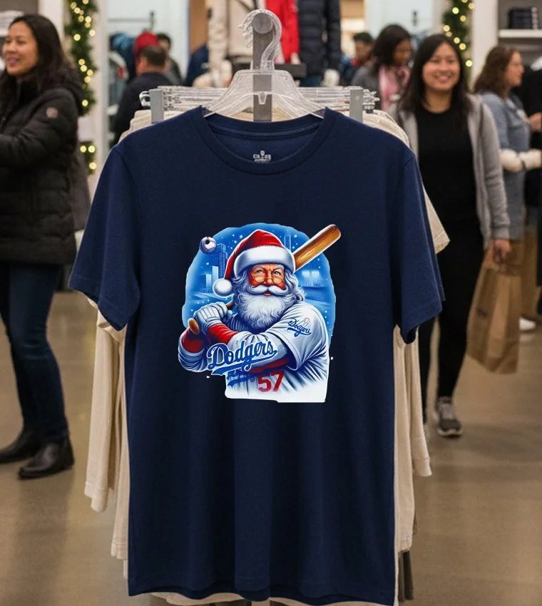 Remember that buzz earlier this year about Dodger Stadium hosting some epic, family-friendly holiday events? Or maybe you caught that snippet on E! News about a local celeb rocking some uniquely festive holiday gear at a pre-Christmas charity drive in Santa Monica? That’s exactly what flashed through my mind when I first saw the La Dodgers Santa Claus Merry Christmas Shirt. It’s not just a shirt; it’s a whole vibe, a memory waiting to happen. Imagine: It’s late November, the air in Los Angeles finally has that crisp, cool edge, and the holiday lights are starting to twinkle down Rodeo Drive. You’re heading to the Grove, maybe catching a movie, or meeting up with friends for some artisanal hot chocolate. You want to show off your undeniable Dodger pride, but also embrace the festive spirit without looking like you just stepped out of a North Pole workshop. This tee is absolutely perfect for the dedicated fan who wants to seamlessly blend their love for LA’s iconic baseball team with the undeniable cheer of the holiday season. It’s ideal for those casual meetups, family gatherings, or even just lounging at home, watching the Dodgers’ greatest moments on repeat, probably with a plate of mom’s homemade tamales nearby. In today’s vibrant LA fashion scene, where streetwear reigns supreme and blending authentic pop culture with personal style is everything, this shirt nails it. We’re seeing a huge trend towards graphic tees that tell a story, that are a subtle nod to local pride and current events, and frankly, that are just fun. This isn’t your grandma’s scratchy holiday sweater; it’s a modern, effortlessly cool statement piece that fits right into the vintage-inspired, relaxed aesthetic that’s all over Fairfax and Melrose right now. It really captures that unique Los Angeles spirit – sun, sports, and a little bit of unexpected holiday magic that we all secretly love!