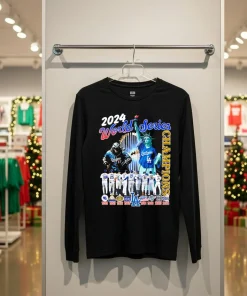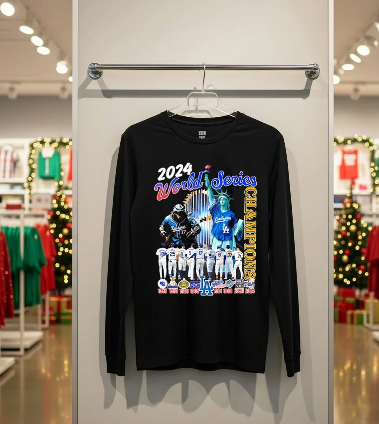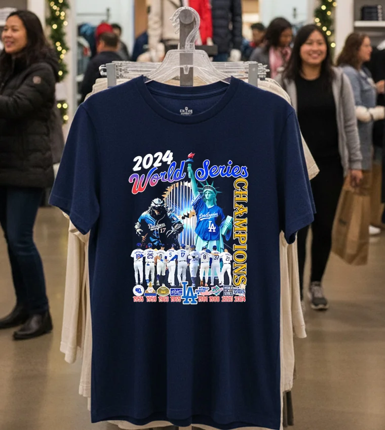 Remember that buzz a few months back when Dodger Stadium was practically a runway? Celebrities were showing up in custom vintage Dodgers gear, and Hailey Bieber even posted a snap of herself in an oversized, distressed tee, mixing high-end with classic sports fandom. It sparked this whole conversation on social media about “game day chic” and how you could rock your team colors without sacrificing style. That’s exactly where the Los Angeles Dodgers 2024 Baseball Usa World Series Champions Shirt comes in. Imagine the roar of the crowd, the final out, the pure euphoria as the Dodgers clinch the 2024 World Series title – this shirt isn’t just fabric; it’s a piece of that history, a celebration waiting to happen! Living in LA, you see this blend of sports and style everywhere, from the streetwear scene on Melrose to the casual cool of a Venice Beach stroll. This shirt taps into that perfectly, blending the timeless appeal of American baseball with today’s hot fashion keywords like “vintage-inspired,” “athletic leisure,” and “iconic fan apparel.” It’s for the die-hard fan who’s already mentally planning their celebration, the one who knows their team is destined for greatness. You’ll be ready to rep the champions the moment they bring that trophy home, whether you’re at a watch party in Silver Lake or just running errands feeling that championship pride.