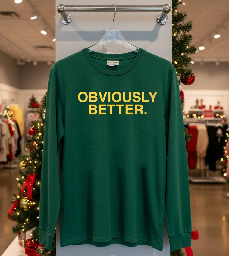 Let’s talk about the buzz in LA right now. Remember when Zendaya wore that perfectly understated graphic tee to the LACMA Art+Film Gala after-party? It wasn’t flashy, but it spoke volumes. That’s the vibe we’re getting from the Obviously Better Text Shirt. Imagine this: you’re heading to the Vogue World: Los Angeles event or just grabbing a latte on Abbot Kinney. You want to make a statement without screaming; it’s quiet confidence, not loud luxury. Last week, TikTok showed a segment on “The Kelly Clarkson Show” featuring minimalist fashion dominating street style from Silver Lake to Santa Monica. This shirt fits right in. It’s for the person who appreciates subtle humor and impeccable taste. Maybe you’re a content creator in the Arts District, trying to capture that authentic, effortless cool. Or perhaps meeting friends for brunch in West Hollywood. This shirt bridges that gap, making you feel put-together yet relaxed. It’s a lifestyle choice for those who know their worth, understanding that sometimes, less is more, especially when that “less” is “obviously better.” It perfectly embodies the Los Angeles fashion scene, where individual expression and quality pieces are key.