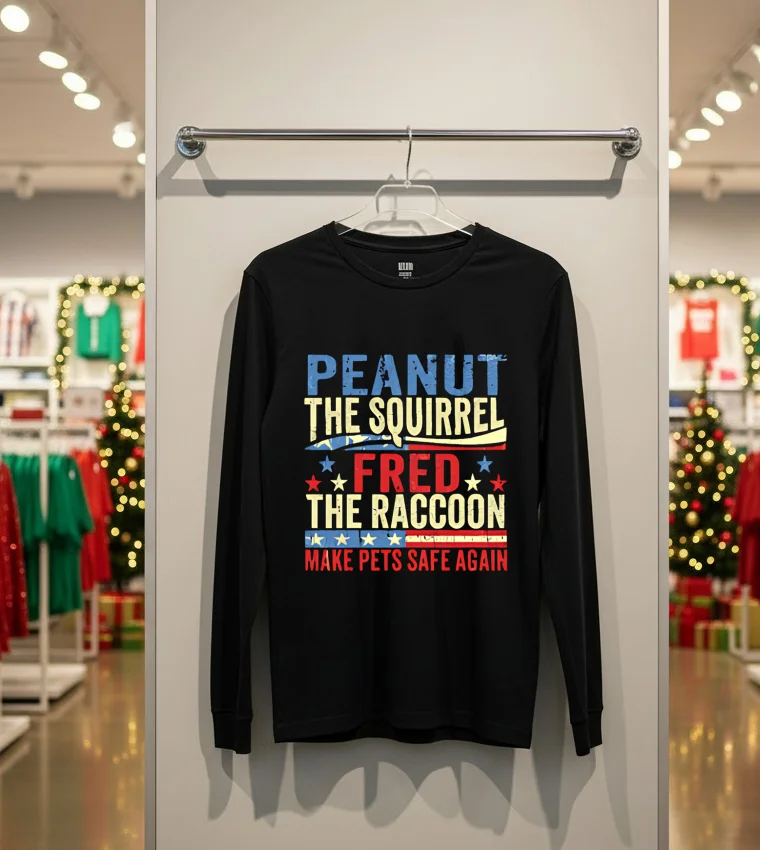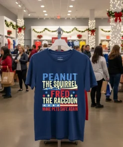 You know, just last week I was scrolling through my feed, and there was this whole vibe coming out of Downtown LA’s Arts District. After that big ‘Fashion for the Future’ summit, some influencers were really championing authentic, story-driven apparel, noting that the best LA street style isn’t just about fleeting trends, it’s about what speaks to you. My mind immediately went to the Peanut The Squirrel And Fred The Raccoon Make Pets Safe Again Retro Shirt. This isn’t just a tee; it’s a statement, perfect for someone who cares deeply about their furry friends and wants to showcase a bit of that vintage Americana spirit. Imagine strolling through a farmers market in Silver Lake, getting a knowing nod from a fellow animal lover. Or maybe you’re at a local pet adoption event, feeling good about supporting a cause, and this shirt just… fits. It’s for the everyday heroes, resonating with that casual chic aesthetic so prevalent in LA right now—eff_o_rtless, yet intentional. With its playful nod to responsibility, it’s also tapping into the growing trend of conscious consumerism and ethical fashion that’s becoming a hallmark of California style. It’s a conversation starter, perfect for those who embody the laid-back, yet passionate, spirit of Los Angeles. More than just threads; it’s a little piece of joy, a silent cheer for making the world a kinder place for our four-legged pals, fitting right into that vibrant, community-focused LA culture.