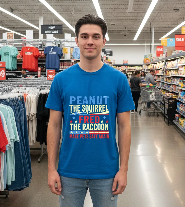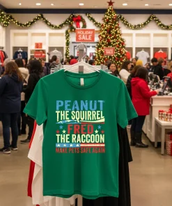 “Oh my goodness, this is it! So many folks rave about Teelabusa and honestly, I get it. My Peanut The Squirrel And Fred The Raccoon Make Pets Safe Again Retro Shirt arrived in just three days, free shipping too—how do they do that? I was wondering about returns, just in case, but after feeling this fabric, I doubt I’ll ever want to send it back! It’s already my go-to comfy tee.”