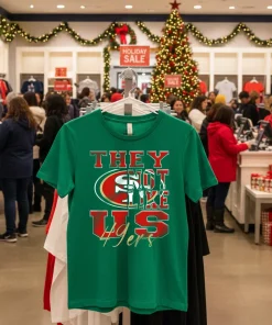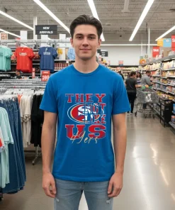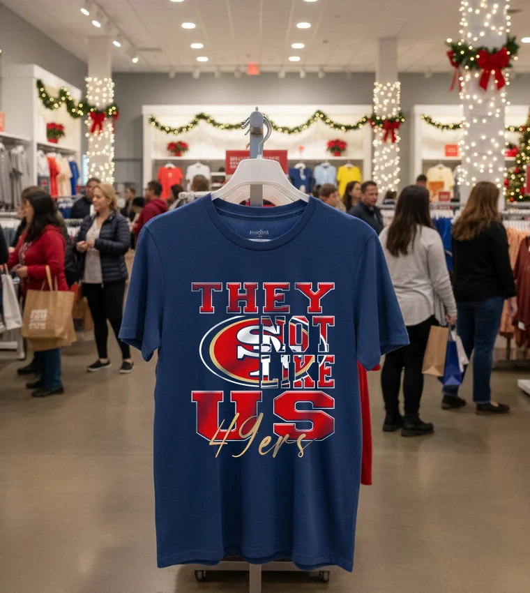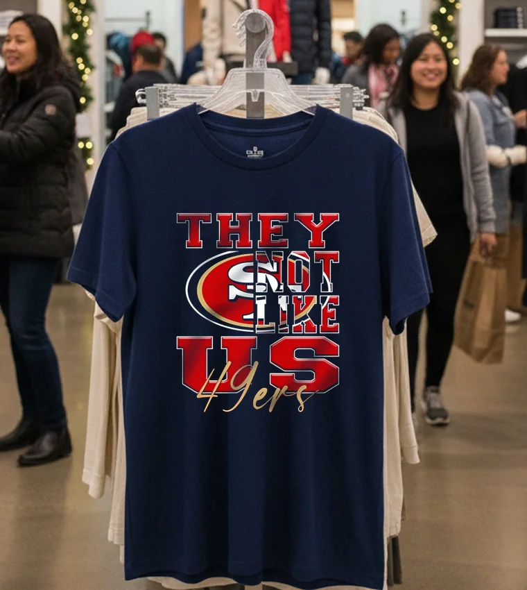 I remember watching that snippet from LeBron James’s interview last year, talking about the “they not like us” mentality, and how quickly it resonated across sports and culture. It wasn’t just about basketball; it was about pride, identity, and that undeniable belief in your team, your city, your crew. That’s exactly the vibe I felt when I first saw the San Francisco 49Ers They Not Like Us Nfl Football Shirt. Living here in Los Angeles, you see the convergence of sports fandom and high fashion everywhere you go, especially with the buzz around recent pop-up shops on Melrose and the ongoing streetwear revolution. There was this one Saturday, I was heading to a friend’s place in Silver Lake for a watch party – 49ers vs. [Rival Team] – and everyone was trying to pull off that effortless, cool LA style. Some had vintage band tees, others rocked oversized graphic hoodies, but I wanted something that screamed “Niners faithful” without looking like I’d just rolled out of bed in a jersey. This tee was perfect. It’s not just a shirt; it’s a statement, reflecting that confident, underdog spirit the 49ers embody. It fits right into the current trend of mixing sports apparel with elevated casual wear, something you see influencers rocking at The Grove or even walking down Abbot Kinney. It’s for the fan who wants to blend their loyalty with a dash of contemporary cool, someone who appreciates a tee that tells a story without needing to shout. Whether you’re hitting up a downtown gallery opening, catching a game at a sports bar, or just chilling at a beach bonfire, this shirt lets you represent your team while staying perfectly on-point with the city’s dynamic fashion scene.