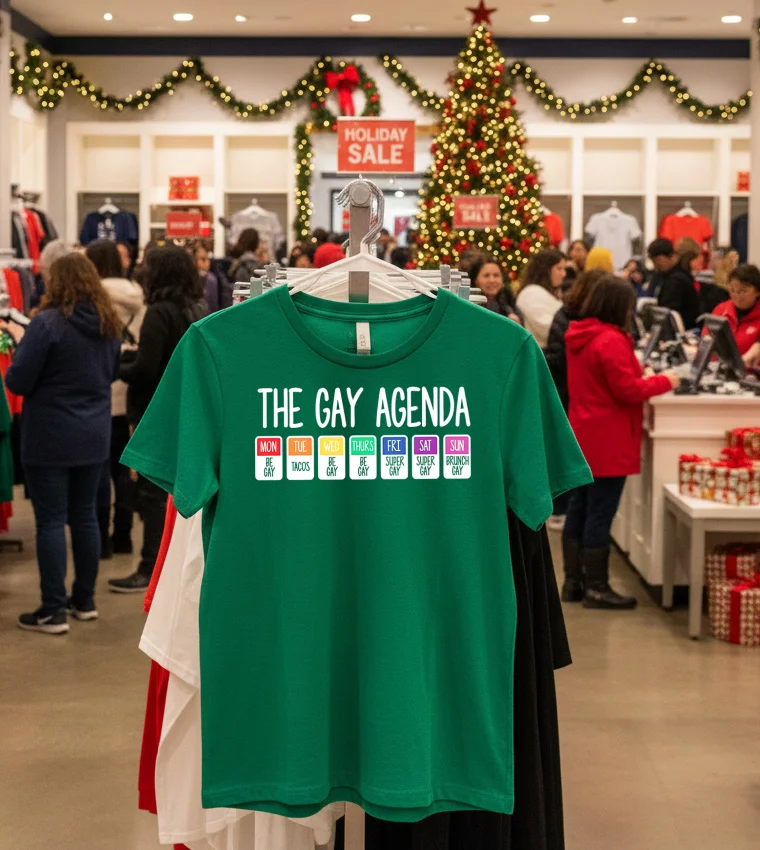 Now, let’s talk details because this isn’t just any shirt. The design itself, featuring that iconic rainbow and bold, empowering ‘The Gay Agenda’ text, is just chef’s kiss! It’s vibrant, clear, and perfectly embodies the spirit of joy and defiance. Seriously, the print quality is top-notch, none of that cracking or fading after a few washes you sometimes get. This tee isn’t just a garment; it’s a conversation starter. And the material? Oh, my goodness. We’re talking 100% American Cotton. It feels incredibly soft against your skin, like your favorite worn-in tee right out of the box. It’s got a great stretch, and it’s wonderfully breathable—perfect for those sunny L.A. afternoons. Style it with ripped jeans and sneakers for that ultimate streetwear vibe, or tuck it into a flowy midi skirt for a more elevated look. So, why wait? Grab yours today! It’s truly the perfect gift for yourself or anyone who wants to wear their heart on their sleeve.