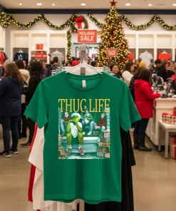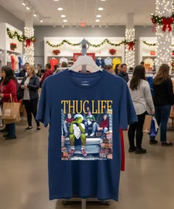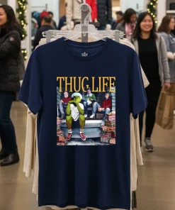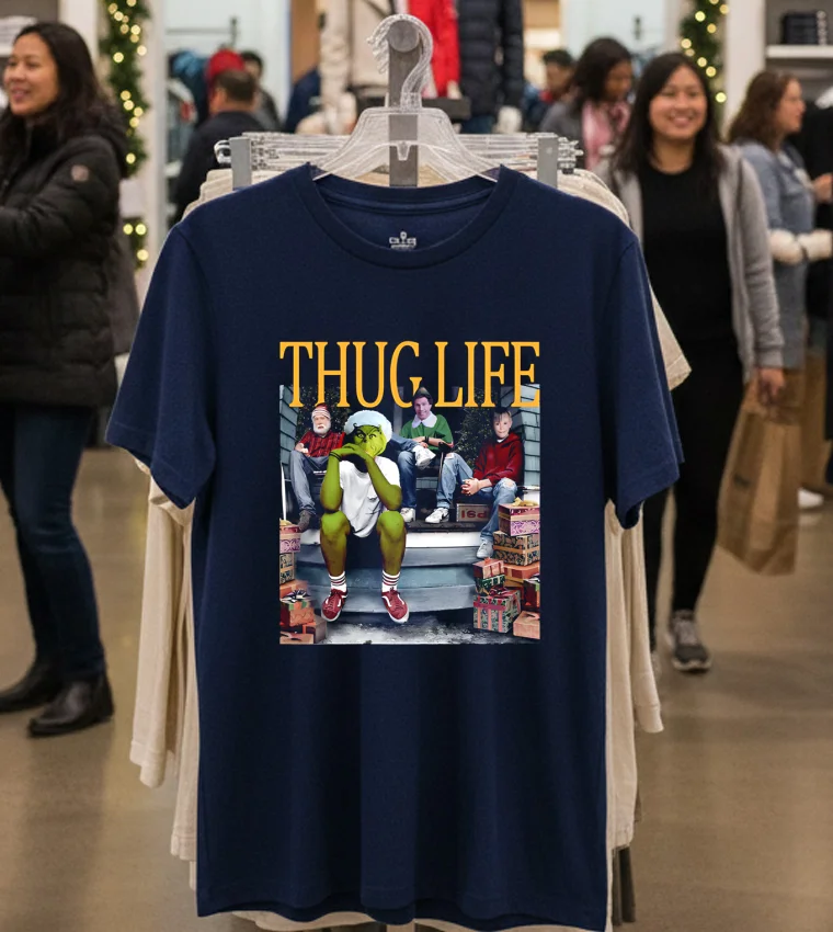 What really caught my eye about this shirt, besides the obvious genius of the graphic, is how it perfectly balances edgy and festive. It’s not just a print; it’s a whole mood. The design, combining classic “Thug Life” lettering with iconic Christmas movie imagery, is pure genius! It’s an instant classic that says, “I’m festive, but I also have layers.” This tee isn’t just a novelty; it’s incredibly versatile. Made from 100% American Cotton, it feels wonderfully soft against the skin – seriously, like your favorite old concert tee from the first wear. It’s got just the right amount of stretch and breathability, making it ideal for those “mild” LA winter evenings or even layering under an open flannel shirt. Pair it with distressed denim and sneakers for that perfect casual-cool look, or throw it on with joggers for a lazy Sunday binging holiday films. It’s the kind of shirt that makes you feel good, you know? Comfortable, stylish, and a little bit rebellious. Perfect gift for anyone who loves movies, hip-hop, and Christmas – or, like, you!